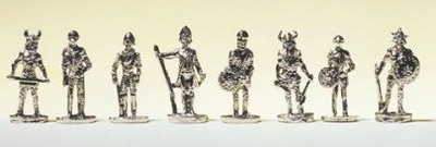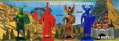 | Figurenmischung ähnlich wie Figuren aus den Serien Wikinger, Soldaten 18.-19.Jhd., Ritter aus dem Ei. Maraja scheint verchromt zu sein, was bei den Ei-Figuren nicht der Fall ist. | ||