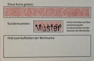 Abonnementskarte (RS-A-2) Feld Inhaber und Kundennummer rosa Wellenmuster "Achten Sie ...der Wertmarke" "Feld zum Aufkleben der Wertmarke" zentriert Kundennummer eingedruckt |