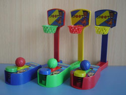 | Bowling - 3 Kegel gelb, Kugel helllila |