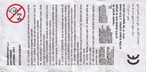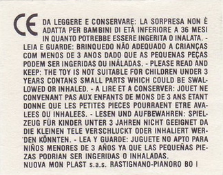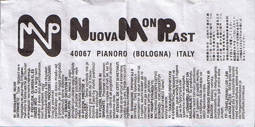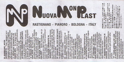 Warnhinweis Nuova Mon Plast vermutlich nach 1991 |
