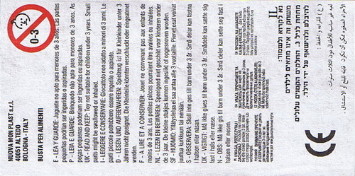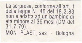 Warnhinweis Mon Plast, Bologna vermutlich vor 1988 |